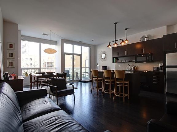 Loft style condo in The Verve. 770 Sq ft of bright, open and functional living space. Includes Gym, outdoor pool, rooftop garden. Steps away from TTC, groceries, restaurants, coffee shops and bars. Leeds Gold Certified building. Stainless steel fridge, stove, dishwasher, microwave, washer and dryer. Rental parking spots available for rent. Landlord responsible for Real estate taxes and condo maintenance fees. Tenant responsible for Hydro and Cable/Internet