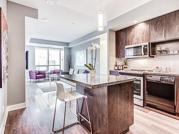 The Verve By Tridel, A Leeds Certified Green Building. Spectacular Sunset View From This Nw Facing Corner Unit. 9' Ceilings, Open Concept Spacious Kitchen W/Granite Counters & Island, New S/S Appliances, Large Principal Br W/5Pc Ensuite, Walk-In Closet. 2nd Br Has Large Windows & New Flooring In Bedrooms. Balcony Offers Cn Tower/City View. Pkg&Lkr. Steps To Subway, 5 Star Amenities, Outdoor Pool/Hot Tub, Gym, Yoga, Sauna, Billiards, Rooftop Terr, Bbqs & More!