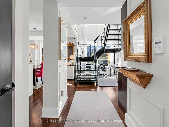 The Verve by Tridel is an award-winning LEED-certified residence that redefines sophisticated urban living in downtown Toronto. This rare two-storey, 2 bedroom loft spans 1,541 sq. ft. of meticulously designed space, complemented by a 75 sq. ft. west-facing terrace where you can enjoy radiant sunsets & effortless outdoor entertaining with a built-in gas connection. Upon entry, the double-height ceilings & striking wall of floor-to-ceiling windows immediately set the tone for a home defined by light, volume, & modern elegance. The open-concept layout seamlessly connects living, dining, & kitchen spaces, creating an inviting atmosphere ideal for both refined entertaining & everyday comfort. The chef-inspired kitchen features quartz countertops, premium stainless steel appliances, a breakfast bar, + a built-in Miele coffee machine designed to elevate each morning ritual. Rich hardwood flooring extends throughout, enhancing the sense of warmth & sophistication. The floating industrial-style staircase ascends to the private upper level, where 2 generously proportioned bedrooms each offer a tranquil retreat. The primary suite impresses with dual walk-in closets + a serene, spa-inspired five-piece ensuite designed for relaxation & restoration. The second bedroom, complete with its own three-piece ensuite, provides the perfect balance of comfort & privacy. Residents of The Verve enjoy an exceptional lifestyle experience, with premium amenities including a resort-style outdoor pool & sun deck, party room, media lounge, billiards area, & a fully equipped fitness centre. Perfectly situated, this address offers the best of downtown living-steps from parks, boutique shopping, fine dining, & convenient transit, with the subway less than ten minutes away. Quick access to major highways ensures seamless connectivity across the city. Suite 617 at 120 Homewood Avenue is a home of presence & polish-where design, comfort, & urban vibrancy meet in perfect harmony.