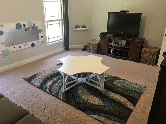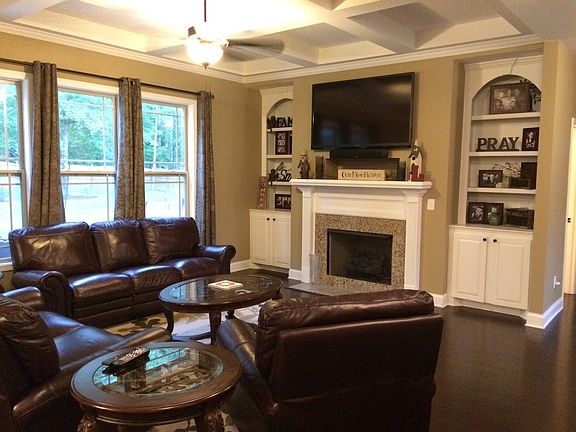 Semi-custom, beautiful home in the quite Hunters Run neighborhood. Stone/brick front with hardy-plank siding, tankless water heater, and dual HVAC systems with Fortress Builder's award winning energy efficient ratings. Two-story grand entrance invites you in to this stunning home with hardwood floors downstairs (except guest bedroom, bath and laundry room), beautiful iron & wood stairs/railing, and an impressive open floor plan. Gas-log fireplace with light-switch ignition, built-in bookshelves, 9' tray and coffered ceilings, crown molding, chair railings - the details impress the moment you step inside. Kitchen touts all stainless steel appliances, huge refrigerator, double-oven, tile backsplash, island, pantry, and tons of granite counter space. The covered, custom-tile patio invites you to an expansive backyard retreat complete with stone firepit, secluded play area & privacy fence all up against undeveloped woods for a relaxing country setting. Upstairs has 4 bedrooms, 2 share a jack-n-jill bath, another full bath & play/rec room. French doors invite you into a large master suite with reading area, giant master bath with garden-size jet tub, tile/glass shower, his/her sinks and huge walk-in closet. This home also includes a built-in central VAC system, in-ground automatic sprinklers, monitored security system, matching granite in kitchen, baths and fireplace, 5 ceiling fans, TV outlets in every BR, family and rec room. Truly a must see!!!