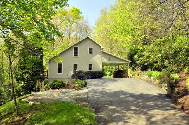 Beautiful, light-filled home in a private forest. You'll feel the good energy in this 3BR/3BA Seven Oaks home tucked away on a private lot, surrounded by rhododendrons and flat yard with seasonal mtn views. The main floor is bathed in natural light with skylights and vaulted ceiling in the great room, a sunny kitchen, and master bed and bath with large deck off living area. The back yard is flat and secluded with carport that does double duty in warm months as covered porch! An easy hike thru the rhododendrons leads to a creek at the base of the property. Many updates, including Pella windows, skylights, kitchen and bath cabinetry and corian bathroom vanity. The 2 upper bedrooms have a shared bath and lower level has large laundry room/workshop, bonus room, and spacious den with separate entrance. Enjoy easy access off a state paved rd and the Selller's also recently paved the driveway to make it even easier!