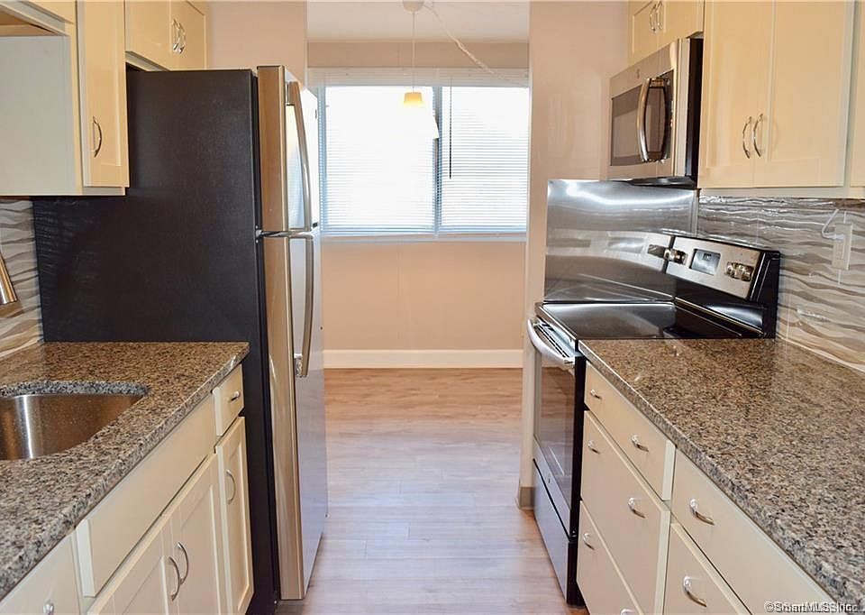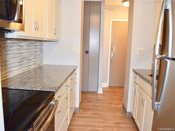Welcome to easy living! 100% Remodeled and ready to move right in to the 3rd floor- one bedroom end unit with fantastic city views with a modern flair! New kitchen with granite counter tops, new cabinets, laminate wood-like floors throughout and new stainless steel appliances. Updated bathroom has new vanity and granite top. Both heating/air conditioning units are new and energy efficient. New blinds on all the windows and new closet systems. Water is included. The unit has reserved parking space in the rear of the building - #68. Full laundry is located in the lower level - no need to leave your building! The building is secured and front lobby has door man. The building has new elevators! This lovely condo is conveniently located to shopping, public transportation, restaurants, major highways and train. Just a short walk to Beardsley Park with picnic areas, walking trails and playground areas. No pets and no smoking allowed. 2 months security is required. Application attached must be used and credit check and back ground check is required. Good credit is a must 675 minimum! Tenant is responsible for carrying insurance. The Huntington is waiting for you to call it home!