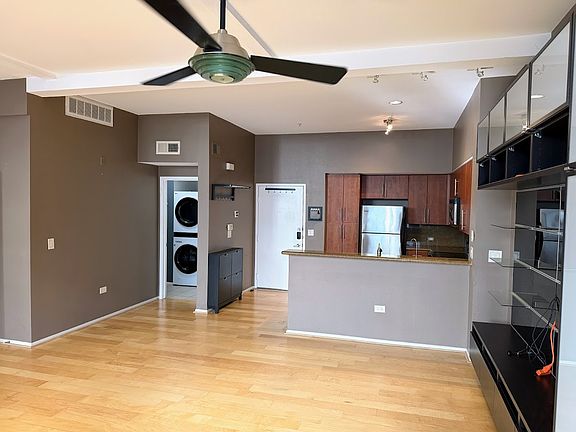 The kitchen features modern cabinetry and ample counter space, while the open-concept design makes it easy to create a comfortable living, dining, and sleeping area. Additional highlights include in-unit laundry, central A/C, and a private balcony perfect for enjoying the downtown atmosphere.