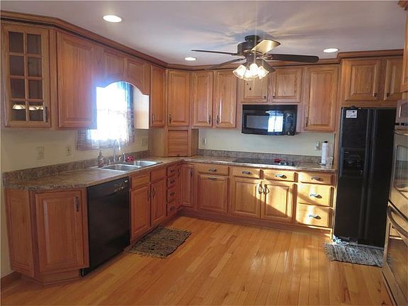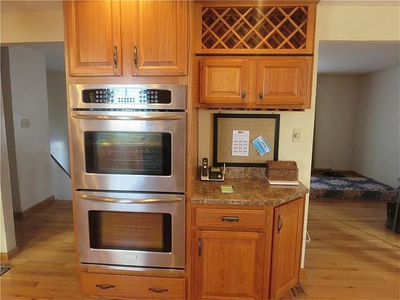 Hardwood Floors throughout this Beautiful 3 BR 2 Full baths Large split entry Brick home situated on 2.4 acres of land with panoramic views. The Updated kitchen features newer cabinetry, a double oven, secretarial area, wine rack, ample counter space and pantry. Walk out to the enclosed sun room porch overlooking the pool. Finished basement with log fireplace and walk out new Pella door to covered rear patio. "Additional Room With Work Bench" plus an Oversized 2 car garage. New AC, Furnace and Pella sliding glass door.