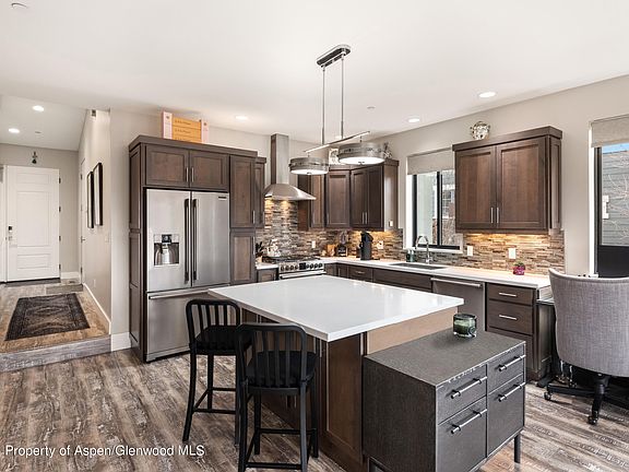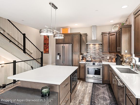 Beautifully done 3 BR | 4 BA corner townhome, fully furnished and move-in ready. Built in 2017 and meticulously maintained with numerous custom upgrades and high end finishes, including brand new carpeting throughout. Nestled in the heart of the Roaring Fork Valley, and conveniently located steps from the thriving Willits Center; with access to fantastic restaurants, shopping, and all of the cultural and outdoor activities that define life in CO. Two car garage with new epoxy floor for all of your mountain gear. Primary suite on the upper level with views of Mt. Sopris from your walkout deck. Openly designed main level features living, dining room, and kitchen with large island for gathering. Downstairs encompasses two additional bedrooms and a bonus flex family room with walkout patio.