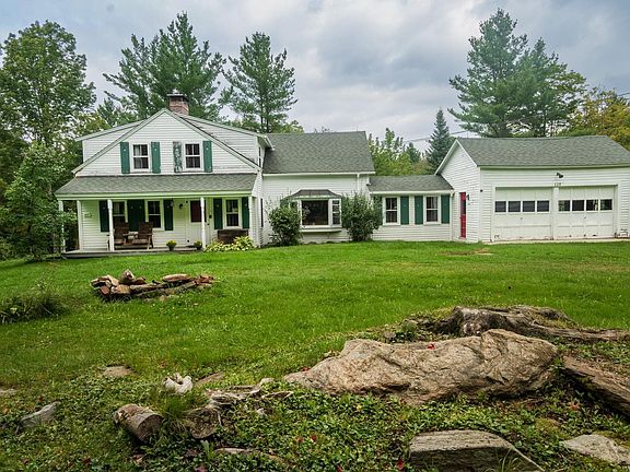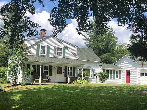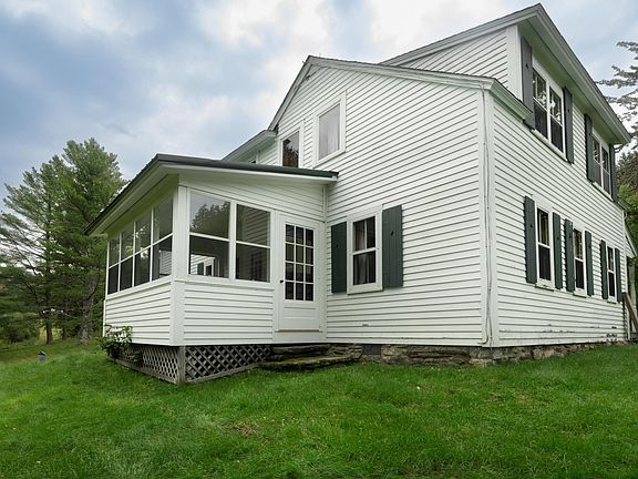 This charming 1837 farmhouse is located on 11 acres of sunlit land that stretches from Lake Sadawga Road to Poverty Row and includes the #8 schoolhouse that once served as the neighborhood school. With wide plank floors throughout, the home offers a versatile floor plan. There's a bathroom on each level (one with shower, one with tub), a spacious living room with wood burning fireplace, a welcoming dining room with a wood pellet stove, a bright seasonal sun porch and a heated breezeway connecting to the garage. Upstairs there's a central bonus room with a wood stove, three full bedrooms and a bathroom with a claw foot tub. With individual room thermostats, the electric heat is easy to control and the wood and pellet stoves allow for additional, economical heat sources The schoolhouse is currently used for dry storage space and offers many possibilities for work or play space. The location is ideal for enjoying both nearby Lake Sadawga and Lake Whitingham and Mount Snow area sports, shopping and restaurants. Due to the location in the 3 acre "rural residential" zoning district, an additional lot may be possible although no testing has been done. The boundary survey was done in 2014. Interior video cameras are present. Some art and decorative items not included.