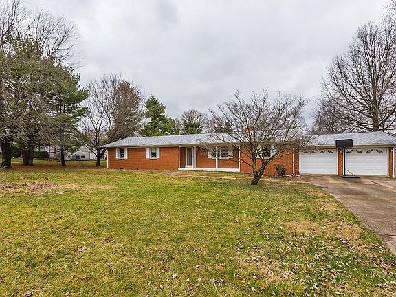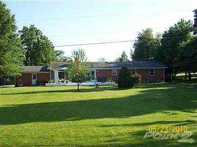 Spacious brick ranch on crawl space on nearly 1 acre treed lot with no houses behind it! Covered front porch, formal entry, living room, dining room and remodeled kitchen with island open to family room with fireplace! Huge walk-in utility room, no carpet - wood flooring, master bedroom has en suite bath with whirlpool tub and separate shower, large deck with electric for hot tub, storage shed. Beautiful level lot with great views, quiet court surrounding farm and pond, newer dimensional shingle roof, tiled kitchen backsplash, board and batten in hallway, walk in pantry, linen closet, newer dishwasher and range, porcelain kitchen sink. Great layout and all on 1 level! Being sold as is