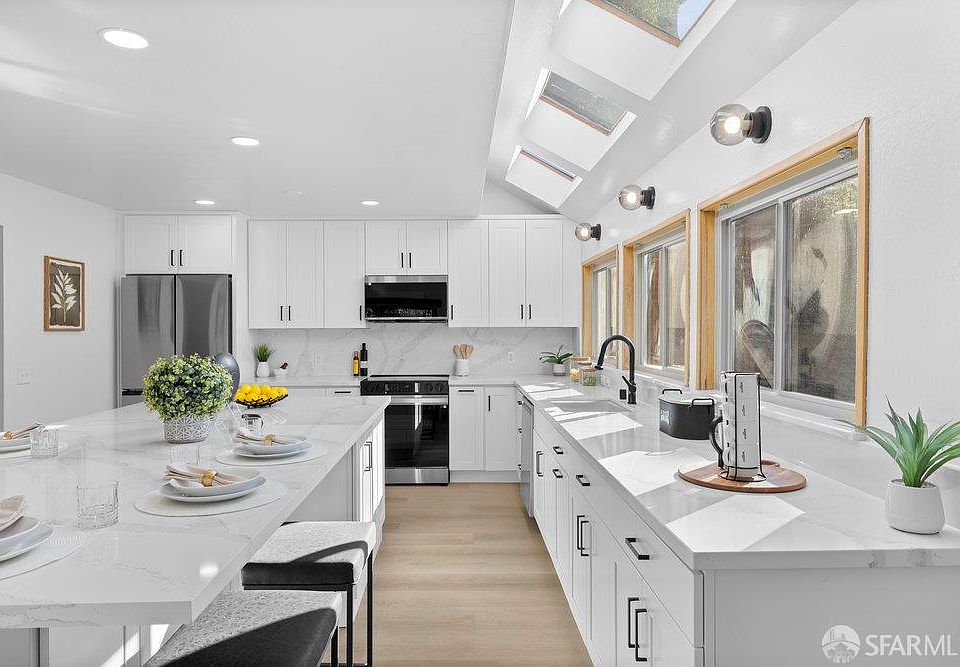 Welcome to 120 La Espiral, a stunningly renovated residence in the heart of Orinda. Recently refreshed with over $200,000 in high-quality improvements, this home combines modern design, versatile living spaces, and a coveted location just minutes from downtown and Hwy 24. The centerpiece of the home is a designer chef's kitchen, anchored by an oversized quartz island ideal for cooking, gathering, and entertaining. Hardwood floors flow seamlessly from the dining and kitchen areas out to a spacious balcony, creating a true indoor/outdoor lifestyle. The Primary Suite enjoys the privacy of the entire top floor, while the main level offers two additional bedrooms, a full bath, a powder room, and the home's central living and dining areas. On the lower level, a separate one-bedroom, one-bath ADU with a private entrance provides endless flexibilityperfect for rental income, guests, or multi-generational living. This level also features a 100-bottle wine storage room and additional unfinished square footage, offering the opportunity to create a custom guest suite, home theater, or fitness studio for future value. Nestled in one of Orinda's most sought-after neighborhoods, this property offers everything and more!