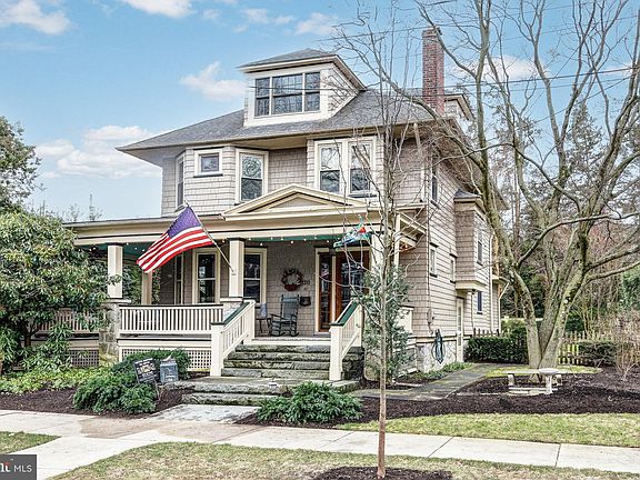 Meticulously maintained 2.5 Story American Four Square home in lovely location. This classic home has 5 bedrooms and 3.5 baths. Some of the many features of this beautiful home include a wraparound porch, spacious foyer with gas fireplace, living room with beam ceiling, dining room with crown molding, kitchen with granite countertops and charming breakfast area, spacious primary bedroom suite with sitting area currently used as an office and large walk-in closet, 4-Zone heat, clean full basement, chestnut woodwork, one-car detached garage, beautifully landscaped yard and more. Close proximity to schools, restaurants and Patco to Philadelphia.