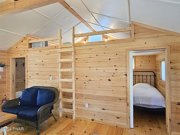 The forest is calling you! Whisk yourself away to a whimsical woodland retreat! Perched near the serene shores of Lake Minisink, this enchanting cabin promises fun Pocono escapades in the woods. The ''mountain life'' vibe is definitely vibing with knotty pine walls, cathedral ceilings and beautiful wood floors. Perfectly petite with two bedrooms and a small sleeping loft, it's your storybook setting for weekend wanderings. Completely remodeled and renovated, it marries rustic charm with modern conveiniences. Warm your heart (and toes!) by the living room wood stove. Roast s'mores and tell tall tales around the fire pit outside. Two storage sheds hide your gear, and there's even a woodshed so you can keep those fires going. Out on the deck, sip your potion of choice and savor the woods & lake vistas. Relax at the end of the day listening to the twilight lullabies of crickets & frogs, accentuated by the occasional hoot of an owl...awaken to the morning calls of the birds at the first light of dawn. Make this haven the canvas for your Poconos wilderness narrative. Because this is a PA state cabin on leased land, ownership is limited to PA residents for recreational use. Cash purchase only, as no financing is available on state cabins. No rentals (short or long-term) allowed.