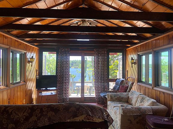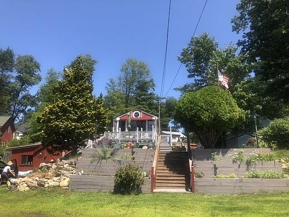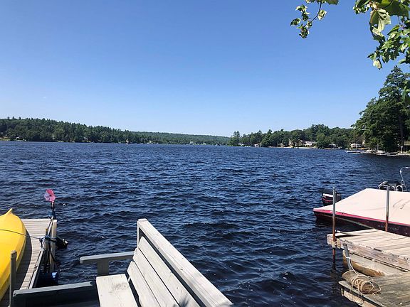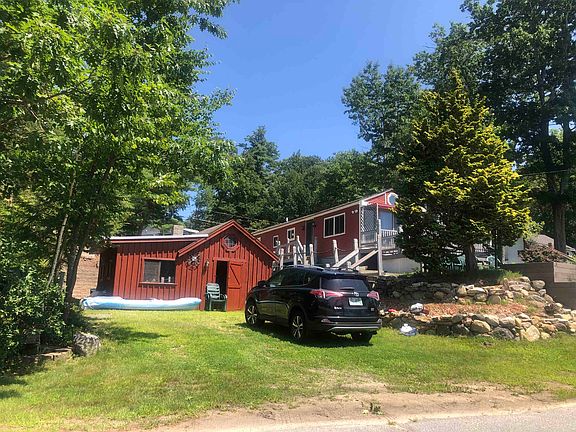 WATERFRONT! Northwood Lake! Weekend or year 'round retreat, for family &/or Air B&B rentals! Charming, modernized mfg'd home (54'X12'), w/nostalgic knotty pine walls, new windows; cathedral ceilings, newer full- sized appliances, modern bath, 2 bedrms; Furnished/Turnkey! Private party-dock across quiet street, w/deck-seating galore, million dollar view and 2 boats included! 20X19 unfinished shed is a great alternate "family room" : kids' playhouse (or adult playhouse w/ bar, room for games/storage, maybe a pool table);lot is 80' wideX140' deep. Seller just had 30 pines removed from big back yard, which will be evened-out for kids, pets, pickleball, volleyball, etc. 3-4 Parking on site. Fabulous garden areas. Big lot, maybe for a new house to replace this home, later: waterfront dock, well, septic, shed, yard are there already...or just enjoy this as is! Nothing to do! Open house Sunday Aug 6,2023 12:00-2:00.