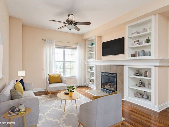 Gorgeous townhouse with three levels of living! The main floor, the heart of the home, has beautiful hardwood floors throughout. The living room features built in white bookshelves/display shelves flanking a cozy fireplace with a gorgeous mantle. A separate dining area could be used as an office / sitting area as there is another dining area in the kitchen! And the kitchen, wow! It has everything a chef needs! An island, including seating, cherry cabinets, granite counters, a pantry, and a butler's pantry with a wine rack. The second floor is home to the huge primary bedroom with a luxurious private bath and walk-in closet and a second bedroom with a hall bath. The finished lower level of the home has a half bath and is a flexible space - a third bedroom, office, second family area - the uses are endless! This home overlooks the pond and is just a very short walk to amazing amenities - A clubhouse with 2 exercise rooms, playground, walking paths, sand volleyball court, pickleball / tennis courts, dog park and 3 pools, including an adult only pool and jacuzzi! You will love summers here! And winters too, with a 2 car garage to keep your cars out of the weather.