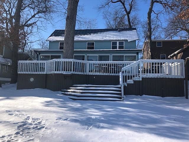 Nicely maintained, charming 4 bedroom, 2 full bath lakefront home with 50 feet of frontage and sandy beach, living room with wood burning fireplace, enclosed front porch, garage, and extra parking. Most furnishings are included. Great location! Close to golf course and shopping.
