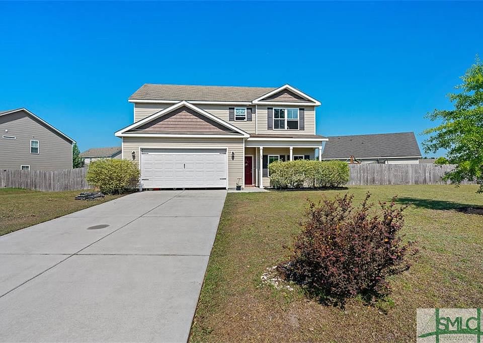 Located in the Laurel Mill neighborhood in the South Effingham area of Guyton, minutes from elementary, middle, and high schools, this 2-story, 4 bedroom, 2.5 bath home is move-in ready and has it all! The welcoming front porch allows rocking chair space. Enjoy the freshly painted kitchen, and unencumbered, open flow and bright coastal feel throughout including a separate, formal dining room and an office/flex space/or over-flow bedroom. The spacious Master Suite is upstairs, as are the remaining bedrooms, and boasts a vaulted ceiling, large, walk-in closet and ensuite bath with double sinks, garden tub and a large, separate shower. The laundry room is conveniently located on the 2nd floor. The .30 ac lot is on a gentle bend with nearby street lights. The generously sized backyard is privacy fenced/gated for easy access. The two-car garage also houses a water filtration system and attic space. Kids will enjoy the neighborhood playground!