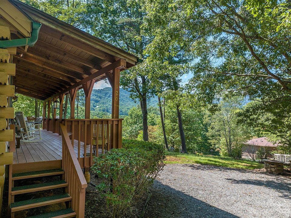 Perfectly charming, income-producing, Lake Lure cabin offers gorgeous year-round mountain views including the Hickory Nut Gorge; Relax and enjoy the mountain life from the spacious front porch and fire pit area; Home is located on a quiet cul-de-sac street surrounded by mountain views; Just minutes from the Lake Lure public marina, docks, park and beach access; Recent updates include: quartz kitchen and bathroom counters, exterior logs sealed, fresh interior paint, new lighting, and septic cleaned in 2022 -home is move-in ready; Create wonderful memories every season in this special cabin and when not in use, create additional income!