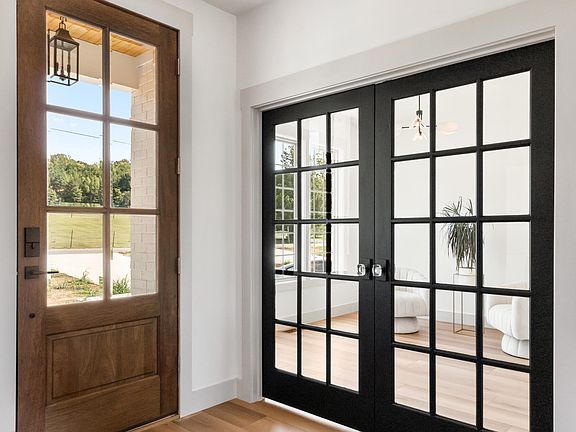 Step into the beautifully designed mudroom with brick herringbone tile, perfect for future custom lockers or shelving. Every closet includes built-in wood shelves and rods, and the home is finished with elegant flooring throughout—no carpets in sight. The powder room impresses with wainscot wall trim, penny tile flooring, and a unique vanity, adding a touch of character.