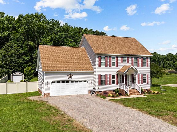 3BR/2.5BA plus bonus on .72 acres. Inviting foyer w/ HWD floors. Separate DR for family gatherings. Separate FR for cozy nights at home. Kitchen features a breakfast bar w/chalk board wall to keep the kids engaged, dinning nook, stainless steel appliances. Kitchen opens to the large LR w/ gas log fireplace. Primary bedroom with WIC, spacious bathroom w/separate shower & garden tub. Large secondary BR's. Huge bonus room for entertaining and movie/game night at home! Fenced back yard features a nice deck, patio and firepit for those summer BBQ's. Additional storage shed for maintaining the beautiful landscaped yard. Washer, dryer, refrigerator and gun safe in oversized 2 car garage convey with home. Playset conveys with the home. Rubbermaid storage bins and swing at the back of yard DO NOT convey with the home. Roof was replaced November 2018!! Seller to pay up to $3K in CC with full price offer. Your new home is waiting for you :)!