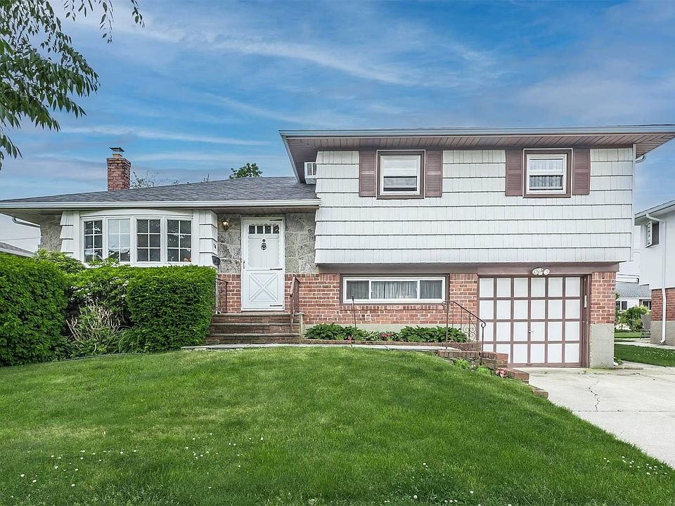 Perfectly Located Mid Block Plainview Spacious Split Featuring an Open Concept Kitchen, Living Room, Dining Room with Sliders to Beautiful Yard, Newly Finished Hardwood Floors on the Upper Level with 3 Spacious Bedrooms and Updated Full Bath, Den, Gas Heat and Cooking, In Ground Sprinklers, 1 Year New Roof, Brand New Hot Water Heater, Spacious Basement, 1 Car Garage, Plainview School District. Home Being Sold As Is. This One Will Not Last!