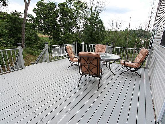 Large Kensington Model located on tree view cul-de-sac. Lrg 2 story foyer,pocket door den, main level powder room, Lrg family room w/gas FP, EIK w/ island & pantry looking out to 20x16 deck, 1st lvl laundry,formal dining room,spacious living room,neutral decor,Upper level has full bath 2 nice sized bedroom,large 3rd bedroom, master suite: step vaulted ceilings,his&hers closets,garden tub,vanity room,shower room,Finished basement ,2 car w/shop.