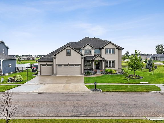 6 bedroom home on the Maple River Golf Course! Nearly 1/2-acre lot, fully fenced with pond and tee box behind the back yard! With windows galore and peaceful course views, this spacious 6+ bedroom home balances luxurious amenities with everyday comfort. At the heart of the home, a chef’s kitchen features an oversized island, walk-in pantry, gas range, wall ovens, and a convenient coffee-pot filler. The main floor includes a large mudroom and half bath, formal dining (or sun room) that opens to the backyard, a dedicated office, and a living room where expansive windows frame stunning sunset views over the course. Upstairs, find four generously sized bedrooms, ALL with walk-in closets, including the primary suite with panoramic golf course views and a huge, spa-inspired full bath. The basement features a large family room, flex/game space, future wet bar, dedicated storage, plus an additional bedroom and full bath. Thoughtful yard placement and low-maintenance landscaping create a peaceful retreat, complemented by a fully fenced backyard, serene views, and a cozy fire pit perfect for crisp evenings. The heated 4-car garage, is complete with epoxy floors and a rear overhead door for convenient back yard access. They've thought of everything! Located just minutes from Fargo. Come take a look!