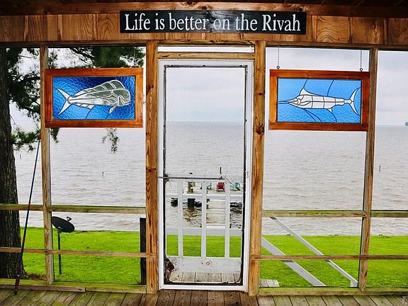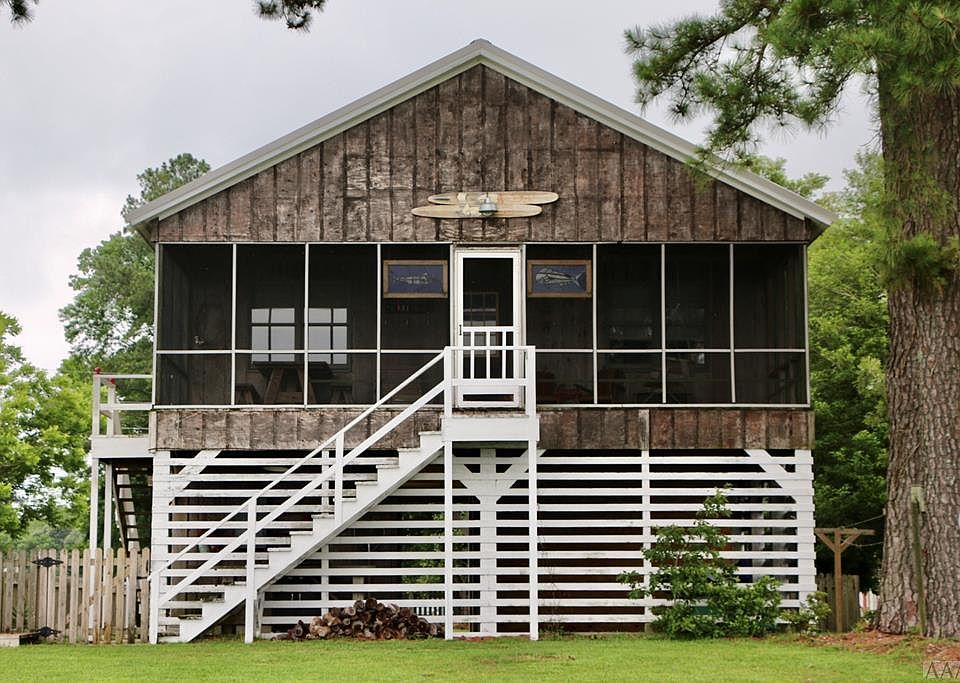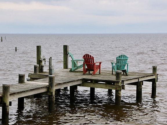 Want waterfront?! Adorable & Affordable Waterfront Cottage is waiting for you to come and relax with the expansive river and sound views right from your awesome screened porch! This home features 2/1.5 bedrooms/bath, one is en-suite! Open Floor Plan! Water views everywhere! Private Pier, parking and storage under this stilt home.Charming interior features will make you fall in love with this home that is perfect for permanent living or getaways. Can be used as an Airbnb or VRBO. No HOA! No Flood Zone! Fenced yard for kids and pets! Fruit Trees too! Furniture for sale! New roof & appliances!