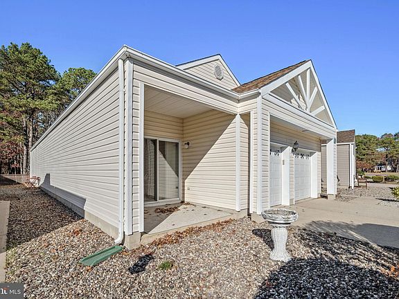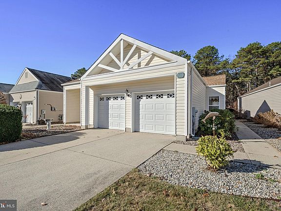 Lovely Hampton Model, located in the highly desirable 55+ Atlantic Hills Community, is move-in ready and includes many desired modern and updated amenities. This popular two-bedroom/two-bath layout offers plenty of space with its Open Floor Plan and Bright Eat-In Kitchen. A Newer Kitchen, including cabinets, granite countertops, tile backspace, flooring, and appliances, have all been re-done. There is an abundance of cabinet space, including a pantry, making storing all your supplies easy and convenient. There is a Newer Roof (2019), an HVAC System (2015), and a Gas Hot Water Heater that's 1 year old. The Living and Dining rooms have an Open Floor Plan with a Gas Fireplace in the Living Room. Sliding Glass Door leads to one of three Covered Patios. The spacious Primary Bedroom has a Covered Patio. The two covered patios provide a serene atmosphere overlooking the fenced yard with a private wooded view. The primary bath has a double vanity, stall shower, and soaking tub. The second bedroom with new flooring is situated on the opposite side of the home, which provides ultimate privacy for guests or other family members. It also boasts a private covered patio. There is a separate Laundry Room directly leading to a large two-car garage. A bonus room with French Doors off the Living room is perfect for a home office. This popular community offers a clubhouse, outdoor pool, fitness room, and many activities and events geared toward all interests. The community is near the beautiful beaches of LBI, numerous shopping venues, health care facilities, and places of worship. Access to Garden State Highway and other essential significant highways is easy. Come see today, this will not last!