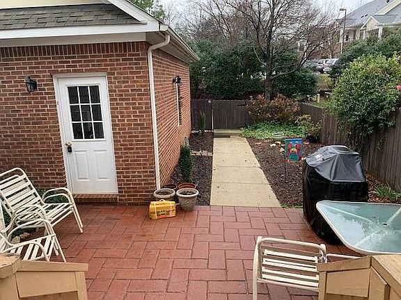 Downstairs Master! Professional neighborhood with a homeowner feel without the worry of actually owning a home. A beautiful all brick, 2 story townhouse with first floor master that includes an updated bathroom, hardwood floors, and walk in closet. Spacious living room with hardwood floors, lots of natural light and gas fireplace. Separate dining room with hard wood floors and plantation shutters. 3 bedrooms and a bathroom upstairs. A detached garage (with pull down stairs for storage) that opens to a private fenced in patio with plenty of room for grilling. Washer/dryer included. No pets.