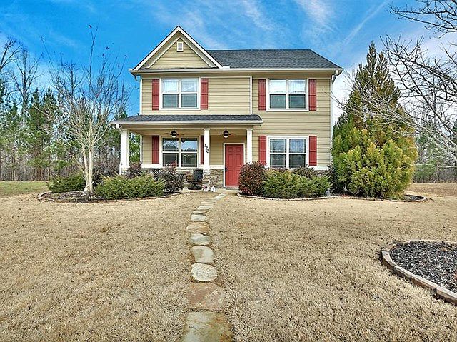 Fantastic craftsman style 3 bedroom/2.5 bath home. All bedrooms upstairs. Cathedral ceilings on main floor with wide open floor plan. This home has been professionally painted inside and shows like a model. The kitchen boasts stainless steel appliances, granite counters, built in desk and maple cabinets. Large master suite upstairs. Great master bath with dual vanities, separate garden tub and shower. Rear entrance driveway. Exterior features include concrete siding, stacked stone accents and rocking chair front porch and sprinkler system. Located at Summerlin neighborhood in Newnan + just minutes to Piedmont Newnan Hospital / CTCA / I-85 for easy commute anywhere! $2000 carpet allowance.