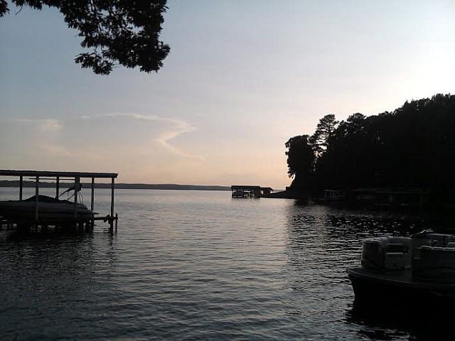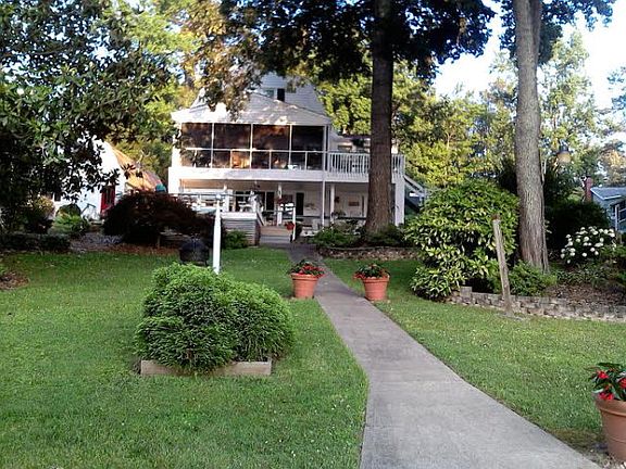 Wonderful main lake views with protection of a cove. Well maintained three bedroom three bath home. Kitchen was remodeled in 2005. Master on main level. Two bedrooms and bath upstairs. Screened in porch to enjoy the lake breezes. Open floorplan in the basement with a covered patio and also a small unfinished area for storage, they use it for a potting shed. Gentle walk to the water.Double garage with storage area upstairs, single carport tucked away street side for your lawnmower or golf cart, and then a double carport beside the house. Mature landscaping and also a place to have a garden. A must see
