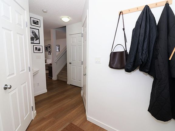 Gorgeous updated half duplex backing green space! This beautiful property has so much going for it - new vinyl plank floors main floor & basement, bright white paint showing off the natural light of the many windows throughout. The open concept kitchen has white cabinets with modern black hardware, there is a granite island for extra work space & friends to cheers wine. The large living space isn't limited by a fireplace, so big furniture can fill it out in your layout choice. The dining nook sits in front of the patio door which leads to the deck, south facing yard & view of the greenspace. Upstairs are 2 huge bedrooms - the 16x12 primary with an ensuite and walk-in closet & the 2nd bedroom which is 15x11 has its own walk-in closet as well. There is a 2nd full bath upstairs as well. The finished basement is a great rec space and houses laundry & utilties as well. Single garage attached & driveway space for a 2nd.