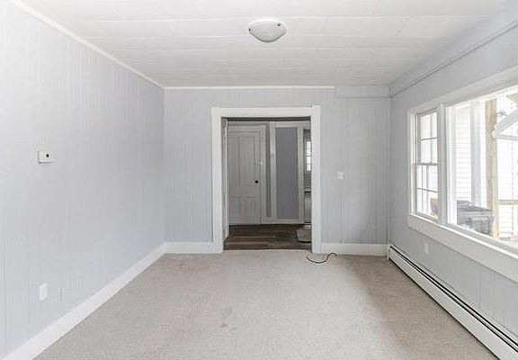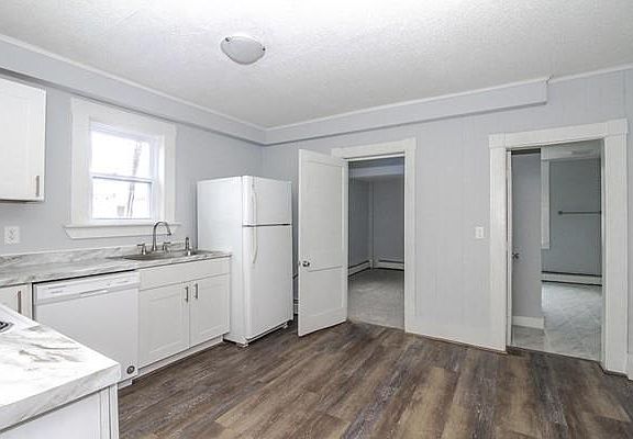 Newly renovated apartment offers 2 bedrooms, eat in kitchen with stove, dishwasher and refrigerator. One full bath with tub/shower and ceramic tile floor. Living room has wall to wall carpet with built in book shelf. Plenty of off street parking. Common laundry in the basement. Pets allowed with restrictions. Rent includes water, sewer, snow and trash removal. Ready for occupancy.