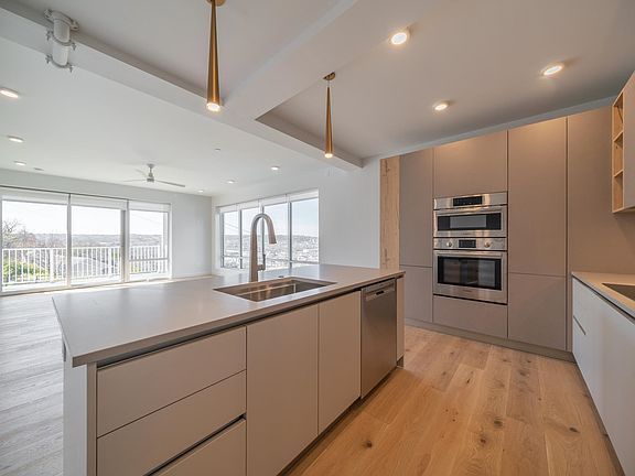 Welcome to Skypoint- N. KY newest luxury condo development. 45 units are built. This unit has 12' ceiling height, includes Bosch kitchen appliances and GE washer/dryer, shades on all windows and a fantastic view of the city! You have use of all the amenities which include inground pool with bar and kitchenette, clubhouse, exercise room, roof top lounge with kitchenette. All units have 1 assigned outdoor parking space. An indoor garage space or outside garage may be purchased for $15,000. Basic cable and internet included in HOA fee.