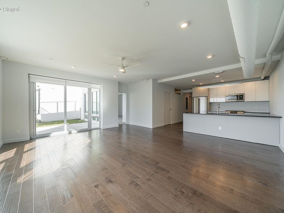1 unit remains and developer has reduced this fantastic unit that has a western and northern view! This unit has 10' ceiling height, GE Cafe appliances, quartz countertops, GE washer/dryer, shades and a view of the city! You have use of all the amenities which include inground pool with bar and kitchenette, clubhouse, exercise room, roof top lounge with kitchenette. Basic cable and internet included in HOA fee. This unit includes 1 indoor garage, and 1 reserved outdoor space.