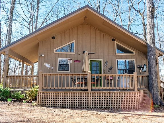 Discover the true "lake cabin" feeling in this furnished 2BR, 2BA cabin nestled in a wooded area, offering a partial view of Pickwick Lake. It features a large 2-car garage w/ storage, a screened porch for serene evenings, wrap-around decks for close nature encounters, & a wood-burning fireplace in the living room for cozy nights. Ideal for those seeking a blend of comfort and the great outdoors, it's moments from shopping and the lake's boat launch, ensuring a perfect retreat at Pickwick Lake.