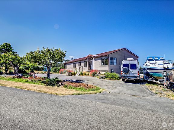 Panoramic water and mountain views are showcased in this captivating Cape George Village home. Versatile floor plan offers formal living room as well as comfortable family room with propane fireplace. French doors from dining room lead to expansive new composition deck. Cheerful light-filled kitchen with eat-in area. Private ensuite primary bedroom plus guest room and flex room. Detached shop has wood stove and fabulous view. Parking for boat/RV. Fenced yard perfect for pets and garden. Well maintained with myriad improvements including elevated foundation, poured concrete crawl space, heat pump, interior & exterior paint, lovely landscaping with drip irrigation. Cape George amenities include marina, gym, indoor pool, pickleball and more.