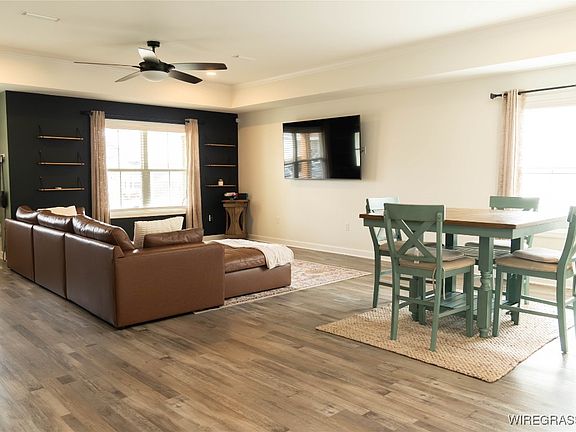 Adequate counter spaceGenerous space for gatheringsRecess lightingCeiling fan