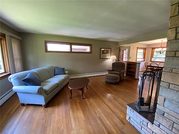 Well built brick & stone Ranch home in South Farms Country location on a picturesque corner lot with trees & a private backyard. Attached one car garage with a breezeway that leads into the kitchen. Large eat-in kitchen with nice quality Martin cabinets, updated appliances & plenty of room for a large table. Kitchen opens into the living room with hardwood floors & a beautiful stone fireplace. 3 good sized bedrooms all with hardwood floors & ample closets. The full bathroom has been remodeled with a tiled shower, new toilet & vanity. There is a pull-down attic for more storage area. The full walk-out basement is ready to be finished with high ceilings & a fireplace . Washer & dryer are in the lower level. The home has Anderson windows, a Buderus furnace, Mega-store hot water tank & a newer oil tank. City water & sewer were hooked-up in 2001. New architectural roof & chimney repointed in 2010. Ready for immediate occupancy This ranch home won't last.
