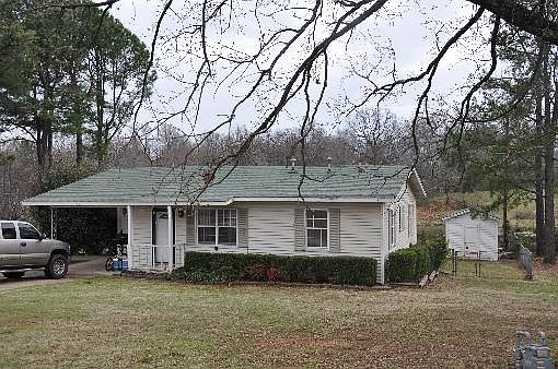 LOCATION: Located in central Poteau on Marie Street and is handy to all of the conveniences of the city. LAND: This home sits on a level 100’ x 135’ lot. There is a chain link fenced rear yard. There is a large pond that butts up to the back boundary of the property. SERVICES: Electric, city water, city sewer, natural gas and mail delivery. HOME: This home was constructed in 1965 and is of masonite construction, has a composition roof and a pier and beam foundation. The home features roughly 1,144 s.f. of heated and cooled living area and has a large living room, spacious kitchen, three bedrooms, one and one half baths, a utility room and a single car carport. The home has a storm cellar just outside the side door. Room dimensions and descriptions include the following: LIVING ROOM: 13’ x 15’, Green textured walls, crown moldings, ceiling fan with light, Berber carpet, white textured ceilings, entry door as well as a side door leading out to single car carport. KITCHEN: 13’ x 14’, Wood look laminate flooring, gray painted walls, lots of kitchen cabinets with hunter green formica tops, white ceramic tile backsplashes, double sink with garbage disposal, dishwasher, gas stove and ceiling fan with light. BEDROOM #1: 10’6’ x 12’, Berber carpet, tan walls, ceiling fan with light and standard closet. BATHROOM: Inlay flooring, white ceramic tile walls halfway up with paper above, commode, vanity with ceramic tops and backsplashes, cabinetry below and mirror and lighting above. UTILITY ROOM: 7’ x 7’6”, Inlay flooring, painted paneled walls, cabinetry above washer and dryer connections. BEDROOM #2: 9’6” x 12’10”, Beige Berber carpet, pink and tan painted walls, ceiling fan with light and standard closet. HALL BATHROOM: Commode, inlay flooring, pedestal sink, painted green textured walls, white textured ceilings, mirror with light bar, commode and tub/shower combo unit. MASTER BEDROOM: 9’5’ x 13’, Berber carpet, beige walls, ceiling fan with light and standard closet. SINGLE CAR CARPORT: 12’ x 15’ Covered with cement flooring. STORAGE BUILDING: 8’ x 10’, Masonite with composition roof. TAXES: $526.55PRICE: $69,500.00COMMENTS: This is a cozy little bungalow style home in a good part of town at a very affordable price.