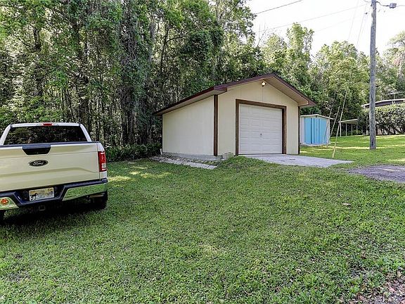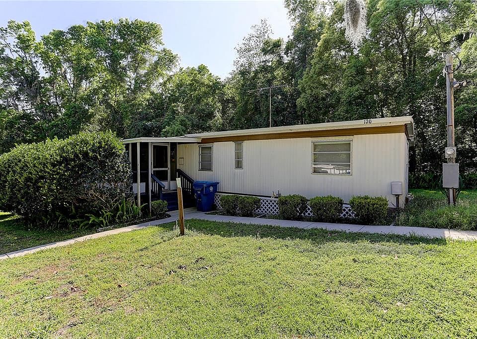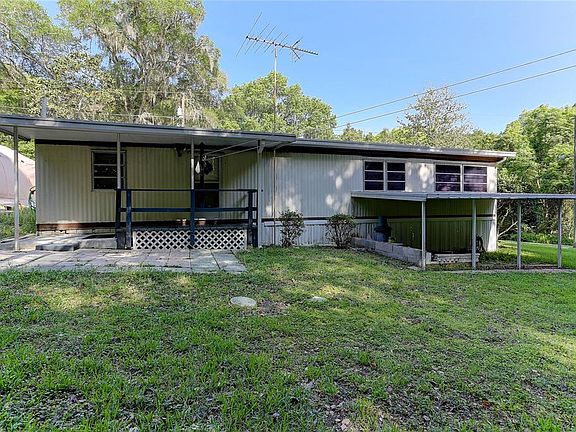 Extremely nice and very well cared for 1974 single wide 12' X 48' with a metal roof over. Detached 1 car garage. Large metal shed. There is room to park several RV's, boats, campers etc. The lot size is approx 49' X 200' with 200' being along the paved road. The entire 200' backs to preserve. No rear neighbors. Just a couple of blocks from downtown Brooksville. 2 bedrooms 1 bath. Very nice front screen enclosed porch. Driveway with a vinyl canopy to keep the sun and rain off your car. There is an aluminum cover behind the home that is perfect for storage and parking the lawn mower. Not in a park. No HOA or CDD fees. No leasing or pet restrictions. This is a really nice piece of real estate, you won't be disappointed. Cash only due to age of the mobile home.