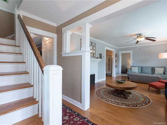 Talk about charm! It begins with the approach to the front door and just continues as you step inside this wonderful 3 bedroom and 2 full bath colonial home in one of Fairfield's most desirable neighborhoods. The foyer/entryway beckons you come further in and stay. You'll see the gracious, newly painted living room with hardwood floors, a wood burning fireplace and further in, your gaze will catch a den/family room with openings in both the living room and dining room. The doorway from the living room into the dining room is wide and allows for all to move freely while enjoying good times. There is a french door leading to the private rear deck and brick patio. The kitchen is a wide galley kitchen with granite counters and stainless appliances. As you head upstairs to the bedrooms, you'll see that there are 2 large bedrooms and a perfectly sized bedroom with a bed-nook in it. This room is every child's dream space for a bed! There is a full bathroom on each floor. The lower level is partially finished and can be a gym, yoga workout space, playroom area or whatever your needs are. The space is terrific.The laundry room is in the lower level too. There is a 2 car detached garage and honestly, the back yard needs to be seen. The yard is partially fenced with an oversized lot. It is lush, shady, private and peaceful. Sitting outside is the perfect way to end a gorgeous summer day. This Stratfield home is very convenient to the train, shopping and even golf at Fairchild Wheeler!