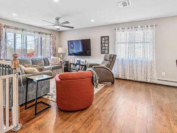Renovated 2019, Open floor plan. Great for entertaining. Features iinclude Central Air, Kit w/ SS appliances & Cntr Is/Brkfst Bar, Pantry w/ pull out drawers. DR has sliders to the huge enclosed porch, LR, MBDRM w/ Full Bath, 2 more bdrms & HDWD flrs upstairs, DNSTRS features a Lg Fam Rm, Bdrm/Office, Powder Rm, & huge laundry Rm that leads to both the Gar & Bkyd. Yard is fenced in, has a Lg shed, covered patio & NEW SEPTIC 3/22 & Public Water. Above ground ROTH oil tank. Driveway for 6 cars. All this & more on a LEVEL lot. A MUST SEE!!