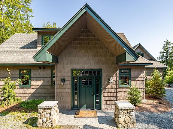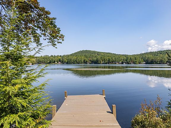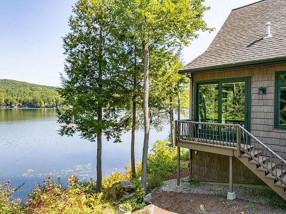 Lazy Bear Lodge on Perkins Pond is a turn-key 4 bedroom, 4 bath Adirondack style home with exceptional construction and décor. New features include a finished second-floor primary ensuite bedroom with a 3/4 bath, cozy reading nook, new well, lighting fixtures, finished gym, landscaping, solar tubes, and upgraded appliances. No detail has been missed. An open floor plan on the 1st floor features a dining area, kitchen with a granite island, soapstone countertops, and stainless-steel appliances. A large family room with a central stone hearth propane fireplace, bright floor-to-ceiling windows, and a 1st floor primary ensuite bedroom with a handicap-accessible shower, walk-in closet, and private deck. A separate living room with cathedral ceiling, propane stove, and sunroom with retractable door, perfect for all seasons. Work from home with lake views in the office nook. 1st floor full bathroom attached laundry room. The lower level of the house has a den with exercise equipment, two bedrooms, a large 3/4 bathroom, and access to utility and storage space. The oversized two-car garage could fit 4 vehicles and includes a finished gym with a propane stove. Enjoy lake life during all seasons. 150 feet of frontage with a 16-foot removable dock. 15 minutes to Vail Resorts Mount Sunapee Ski Resort and Adventure Park. 20 minutes to downtown New London with Summer stock theater, restaurants, shopping center, I89, and much more! 2 hours to Boston. A truly bucolic New England retreat.