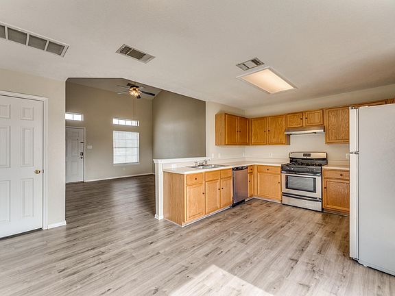 This two story home is located in a quiet cove. The master room is located in the bottom floor with 2 spacious rooms on the top floor. The kitchen has stainless steel appliances and the garage fits 2 cars. The house is close to entertainment center EVO and golf course. In addition HEB plus, Costco, and Home Depot are within a short drive.