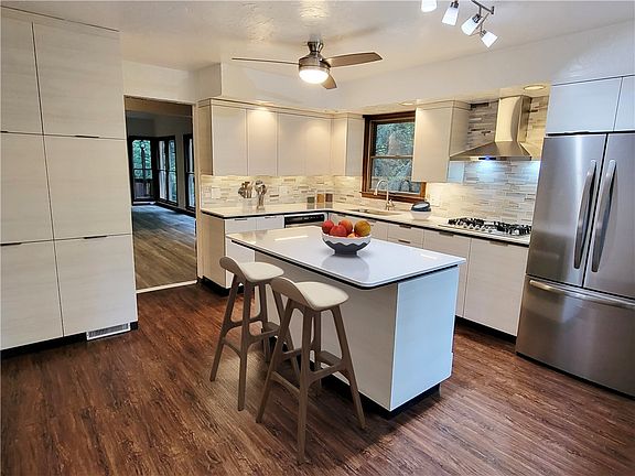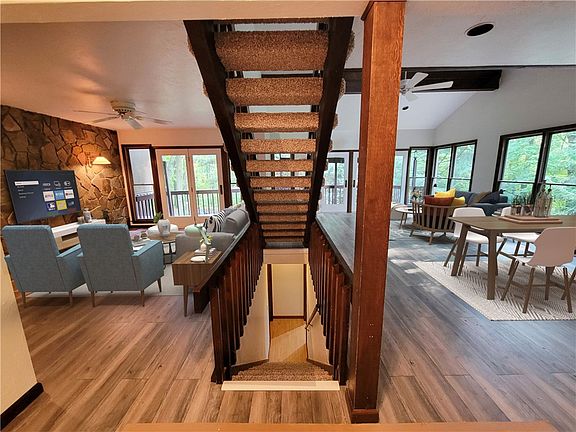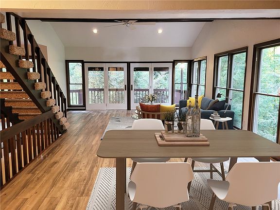 Wow! Wait till you see this cozy, warm, welcoming townhome. This unit has a brand new kitchen that you will enjoy spending time in. Nicely appointed with high end custom cabinets finished in a light woodgrain. 5 burner stainless burner cooktop. Custom quartz countertops with mosaic back slash. A nice size island with a built in convection oven. Open floor plan, vaulted ceilings in the Family/Living/Dining areas that offer the most beautiful, private wooded views. The lower level has a nice sized room that could be used as a bedroom. Huge cedar closet, full bath and a laundry room. The lower level has a walk out that over looks the back wooded yard which has a nice fire pit. The upper level has 2 bedrooms, full bath and walk in attic that makes storage easy. This unit has an abundance of storage through-out!! HOA covers Grass cutting, Garbage collection and the lamp posts in the neighborhood.
