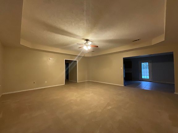This 3-bedroom, 2-bath, 1,719 sq. ft. brick home with a 2-car garage is located in a sought-after neighborhood. Step inside to a spacious living room featuring comfortable carpet, a tray ceiling, and a ceiling fan. The eat-in kitchen offers plenty of cabinet and countertop space, along with appliances including a refrigerator, stove/oven, microwave, and dishwasher. A door off the kitchen leads to the fenced-in backyard with a patio. A dedicated laundry room provides washer and dryer hookups along with cabinet storage. The bedrooms are well-sized, each with ceiling fans and carpet. The primary bedroom includes a walk-in closet and a full bathroom with a tub/shower combo and a vanity with cabinet storage. The secondary bathroom also features a tub/shower combo, a vanity with extra countertop space, and additional storage. The attached 2-car garage offers convenience, and the fenced-in backyard provides privacy. Pets are negotiable. This is a NO SMOKING property.