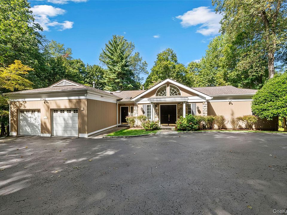 Set in one of Bedford Corners’ premier estate neighborhoods, this 4-bedroom, 4.5-bath Ranch combines modern comfort with timeless appeal. A welcoming foyer with a dramatic stone wall introduces the home, leading to a spacious living room with fireplace, soaring ceiling, hardwood floors, and walls of windows that flood the space with natural light. Sliding doors open to a large deck, creating seamless indoor-outdoor living. Conveniently located off the foyer, a guest bath with laundry adds everyday functionality.