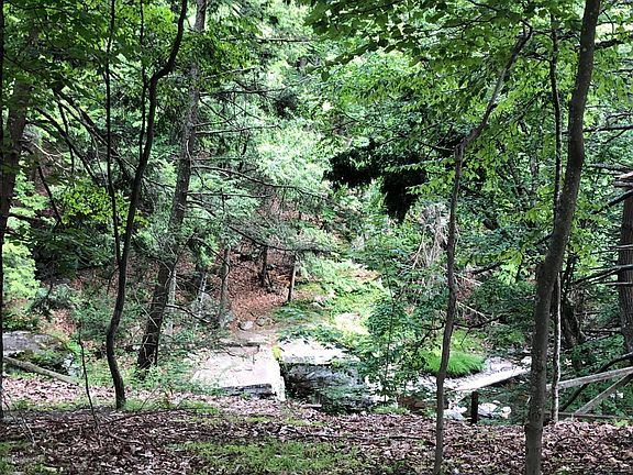- Features: Corner Lot, Wooded, Stream, Sloped, Views, Common Ground