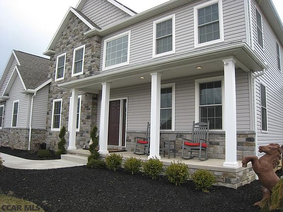 Beautiful, like new home with dramatic details and high-end finishes throughout; cherry cabinetry, granite counters, oak hardwood flooring, arched doorways, wainscoting and crown molding, iron and wood railings and so much more. Oversized ensuite Master Bedroom, 2 additional bedrooms boasting large closets and a fourth bedroom with private full bath complete the second floor. Lower level has 2 egress windows, walkup stairs, plumbed for full bath and additional height to foundation at construction lends itself to the future of finishing the lower level. Side load, conditioned, large garage offers extra storage and work spaces. Covered front porch; flat-professionally landscaped, fenced back yard with deck enhances the beauty of this home. Located in Stearns Crossing, home is minutes to downtown State College, PSU, airport, shopping and parks.