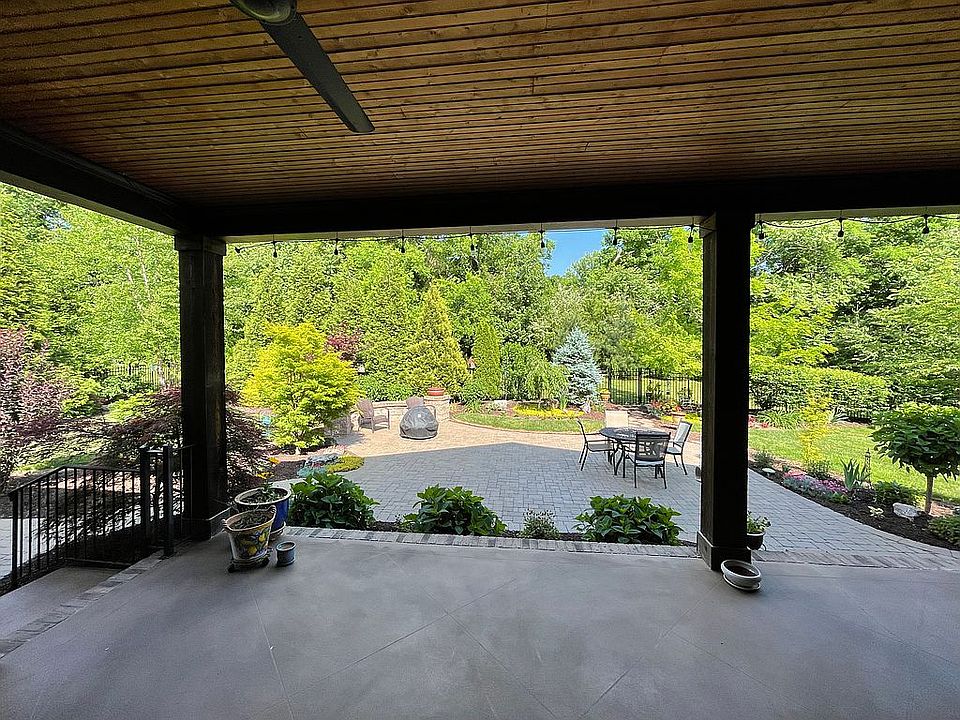 Beautiful French Country home set on a private wooded lot adjacent to a green space area with creek running through it. Custom upgrades throughout. Open floor plan with Kitchen Aid appliances, customized hardwoods, exposed wooden beams and wall of windows leading to back porch/backyard. 2 master bedrooms on main level as well as office/reading room and additional bedroom and half bath. Additional windows added to both levels of home, adding to more natural light. 2nd level has bonus room with additional bedroom and office. Extra large back porch with stained/stamped concrete and corner wood-burning fireplace. Fenced-in backyard has patio with extensive hand-cut customized stone pavers and accent wall, coupled with tremendous variety of flowers/trees/plants results in a serene & peaceful park-like atmosphere in an old world setting.