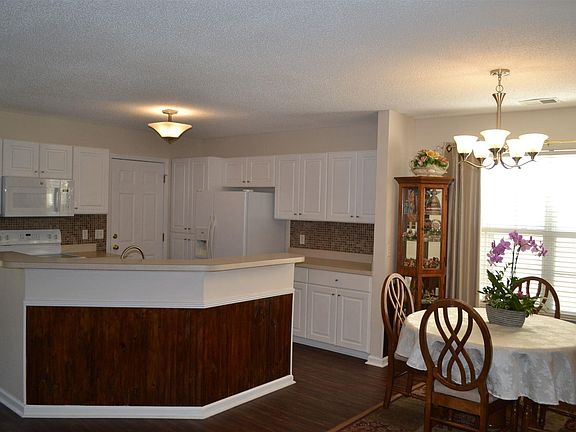 • Kitchen: Bar, Counter Tops-Formica, Eat In, Island, Floors-Laminate, Backsplash-Tiled, Cabinets-Glazed